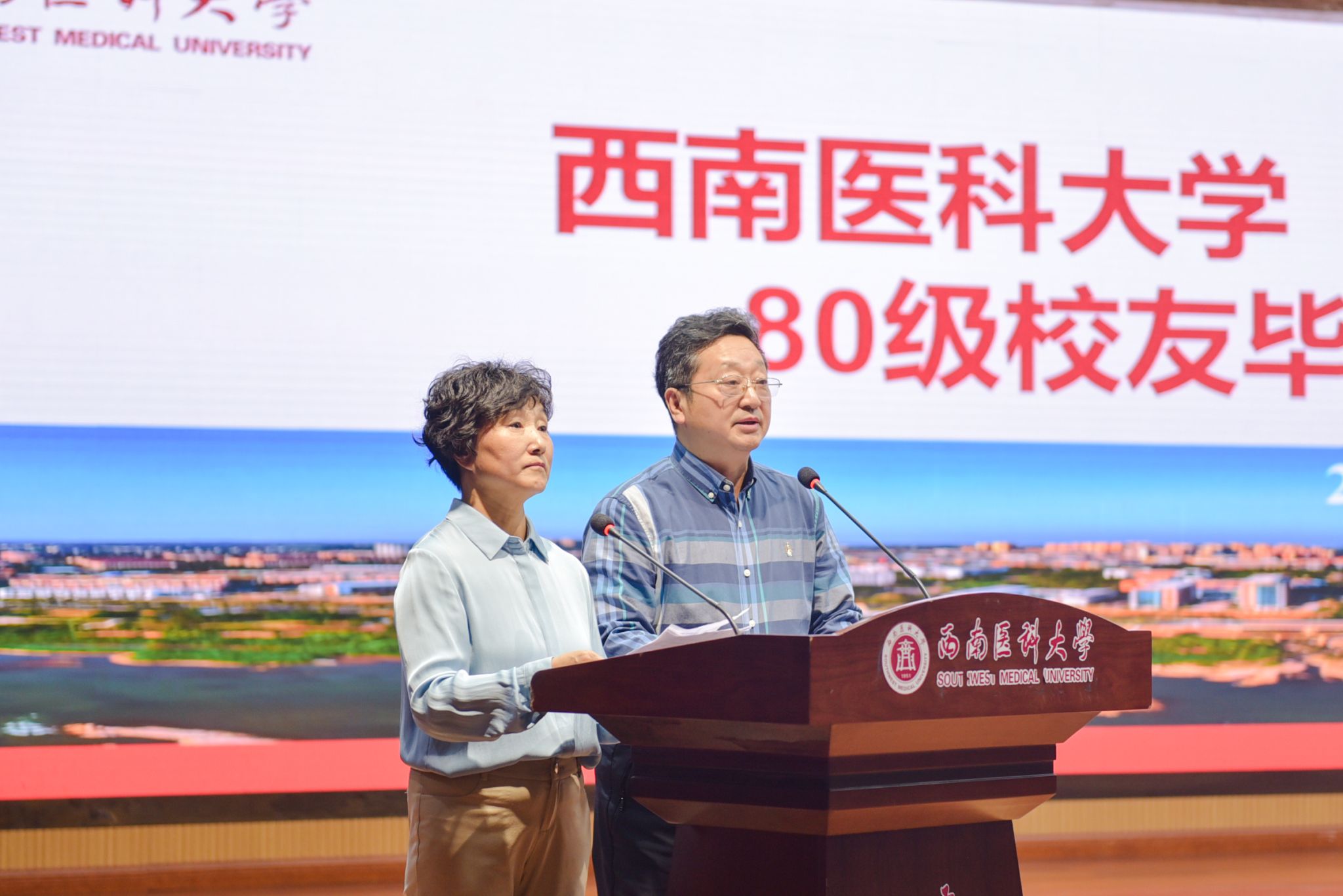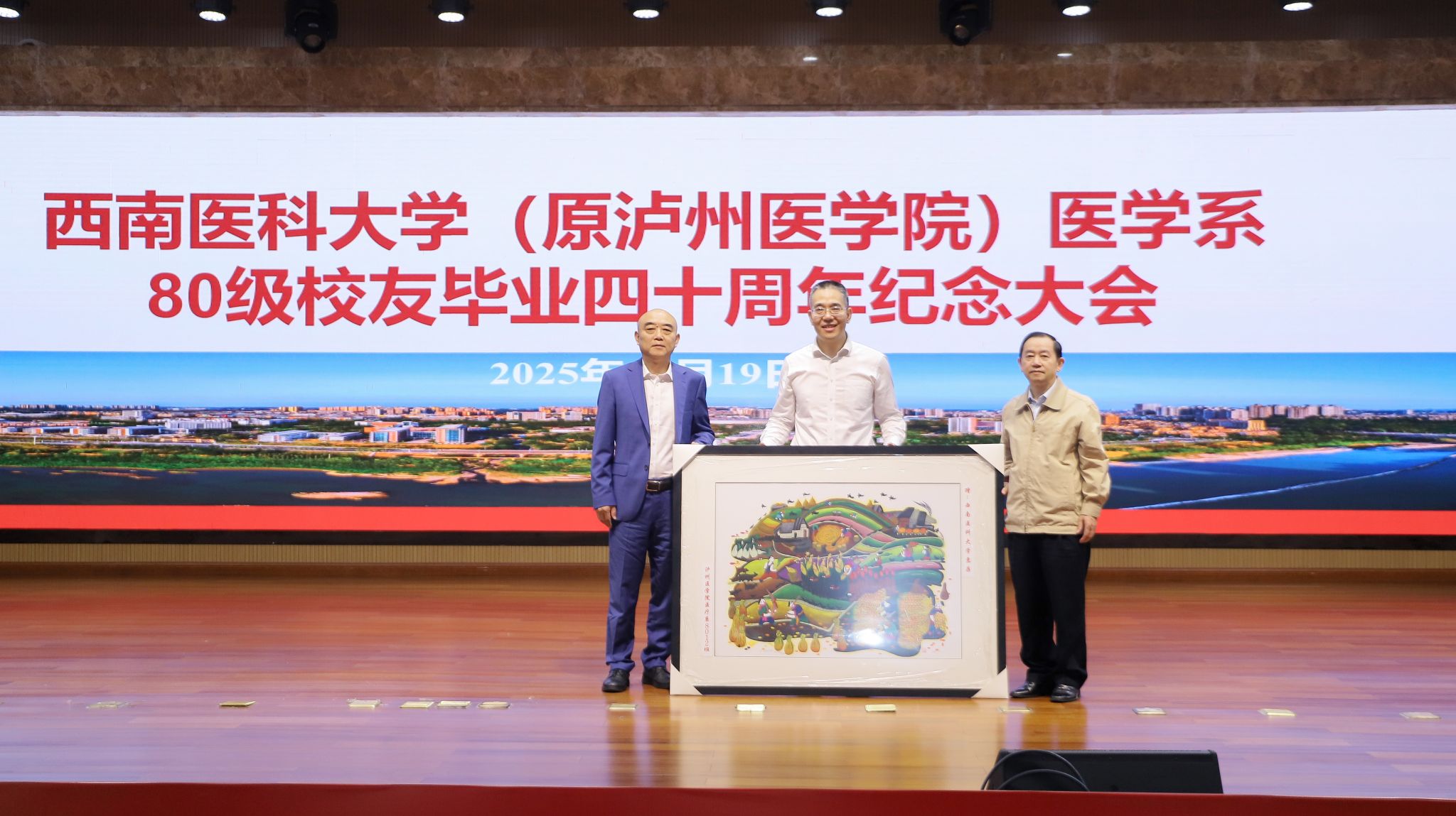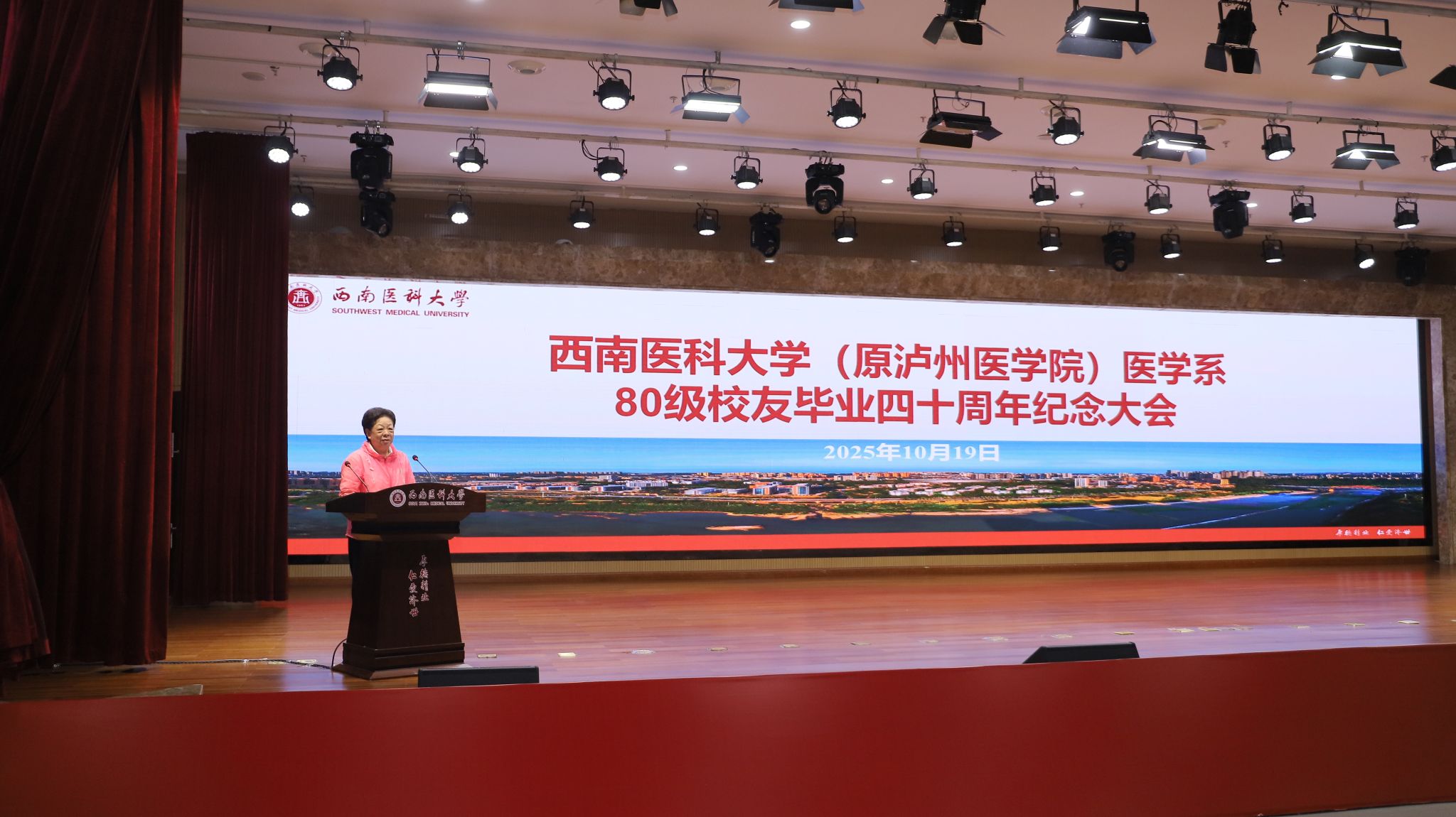 金秋送爽,丹桂飘香。2025年10月19日上午10时,西南医科大学(原泸州医学院)医学系医学专业80级校友毕业四十周年纪念大会在城北校区第一学术报告厅隆重举行。在家校领导、相关职能部门负责人与医学系80级150余名返校校友欢聚一堂,共忆青葱岁月,共话母校发展,共叙同窗情谊。
