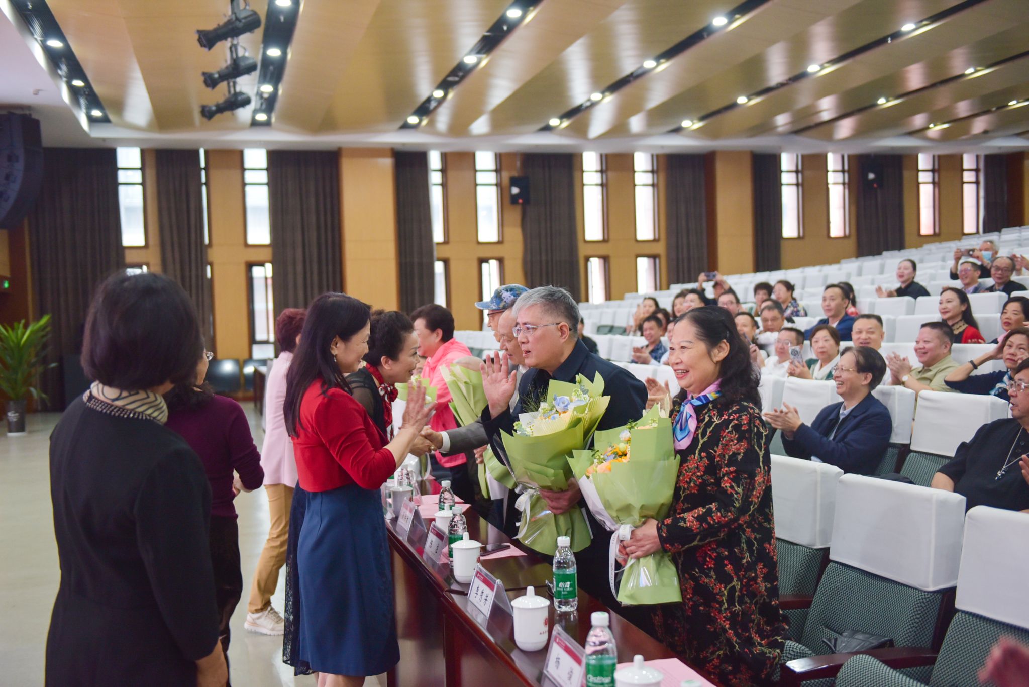 大会现场洋溢着尊师重教的浓厚氛围。80级校友代表向到场的教师代表献上鲜花,一束束鲜花承载着学子对恩师四十年如一日的感恩之情。